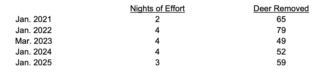 Taking a regional approach to deer management was discussed in late 2023, when City Council last discussed deer management. Surveys distributed in 2023 and 2025 show that residents are continuing to see negative impacts from deer, despite the city’s management efforts.