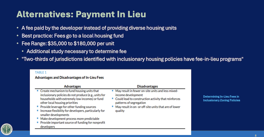 If the city were to install a payment in lieu system, developers who are unable to meet the diverse housing requirement can instead pay into a fund, ideally a housing fund, which the city can then use to carry out its goals, Bartley said.