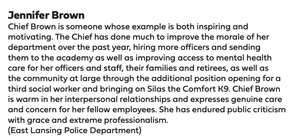While city officials have largely supported Brown, city meetings are regularly filled with members of the public calling for the chief’s resignation and substantial change to ELPD. Two city commissions and prominent local organizations like the Women’s Center of Greater Lansing and the Lansing NAACP branch have called for Brown’s resignation.