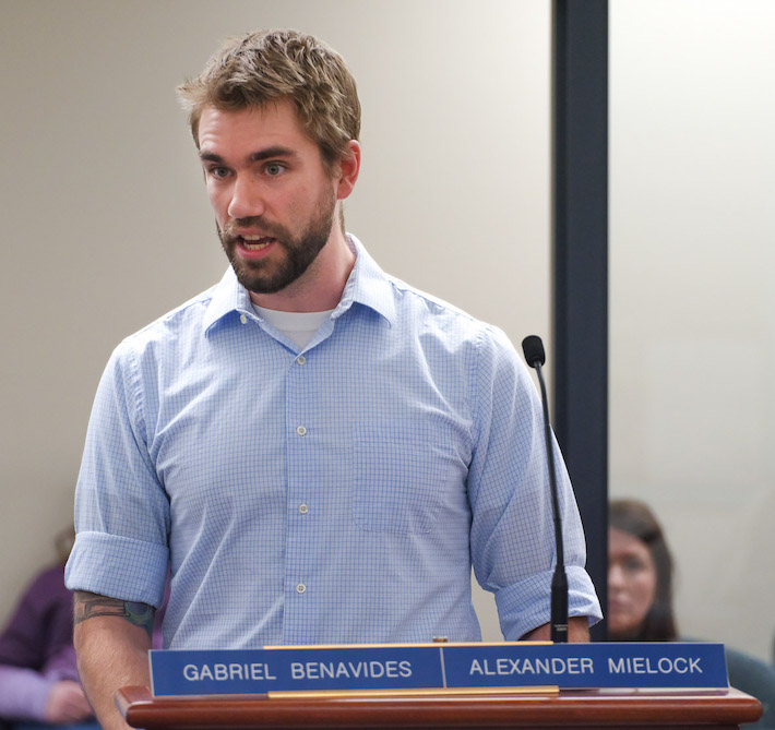 East Lansing Board of Education President Chris Martin and Superintendent Dori Leyko at the March 11, 2024 East Lansing Board of Education meeting. (Dylan Lees for ELi)